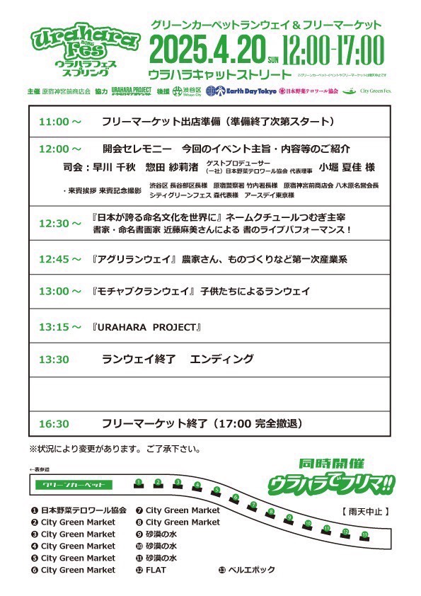 グリンランウェイのスタート地点でウラハラマルシェも出店を承っております。お気軽にご参加下さいませ。